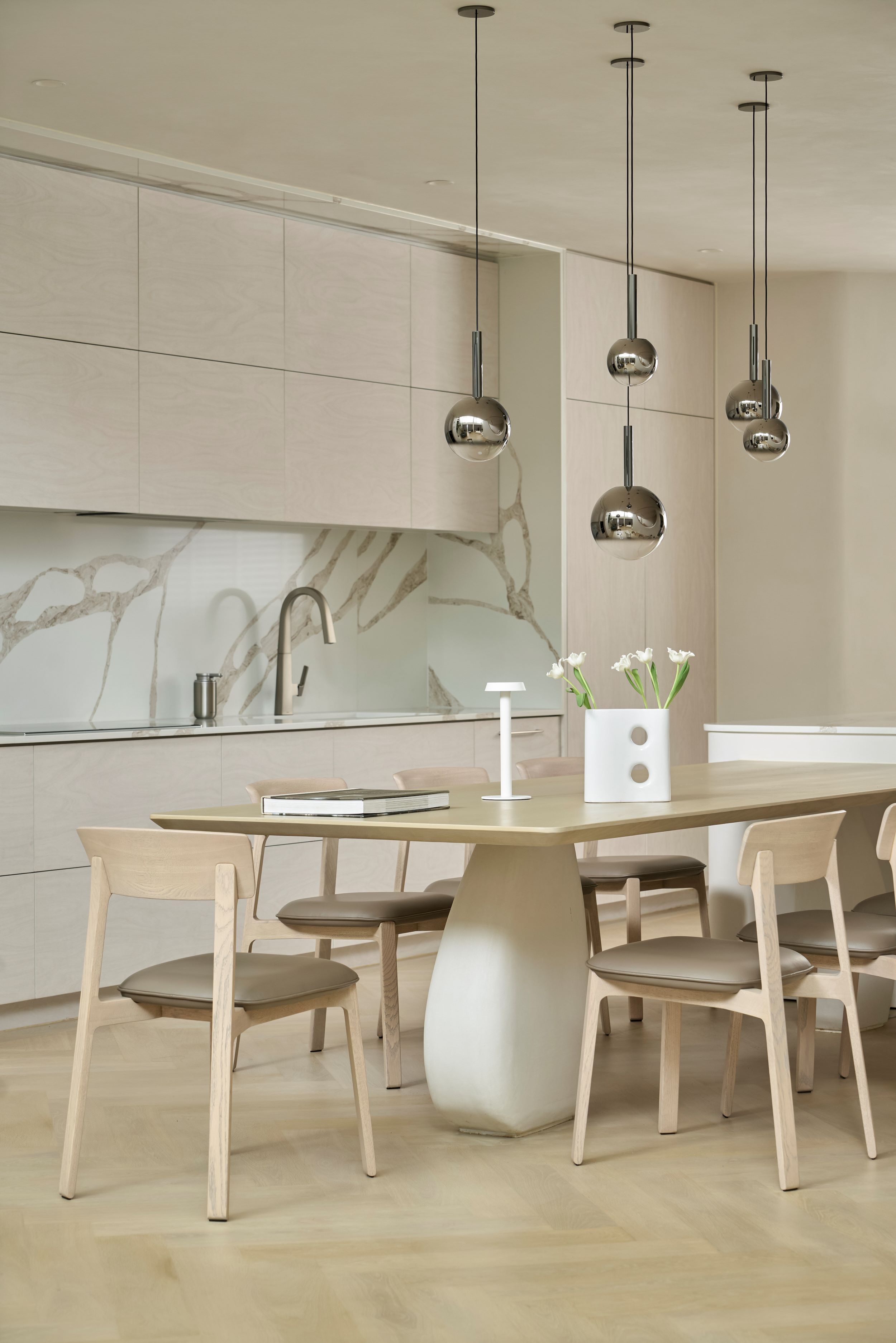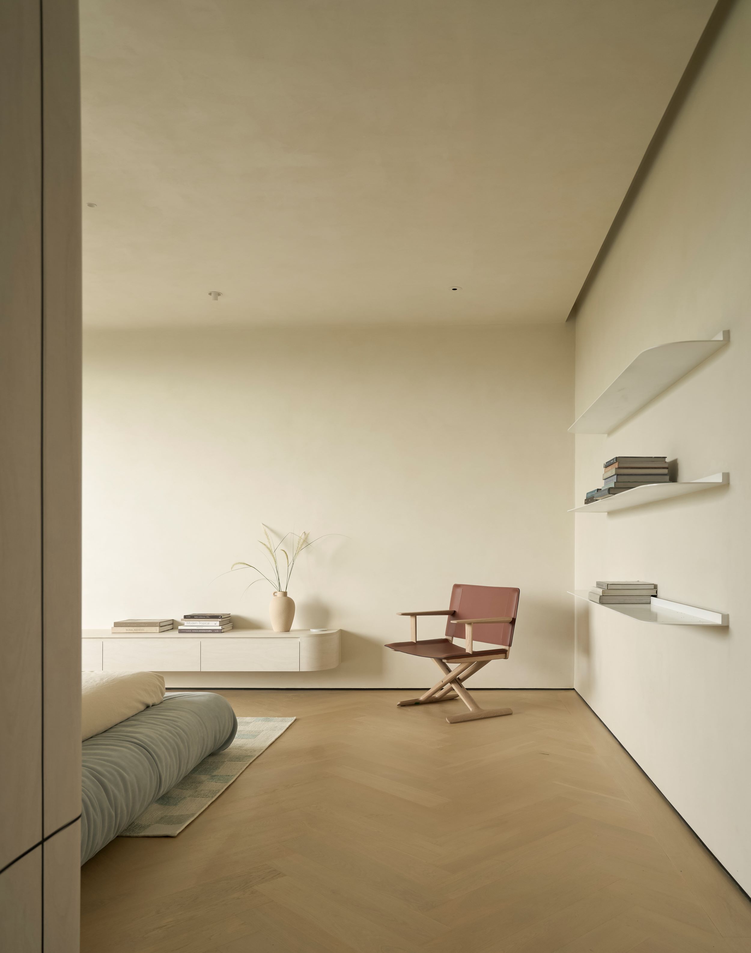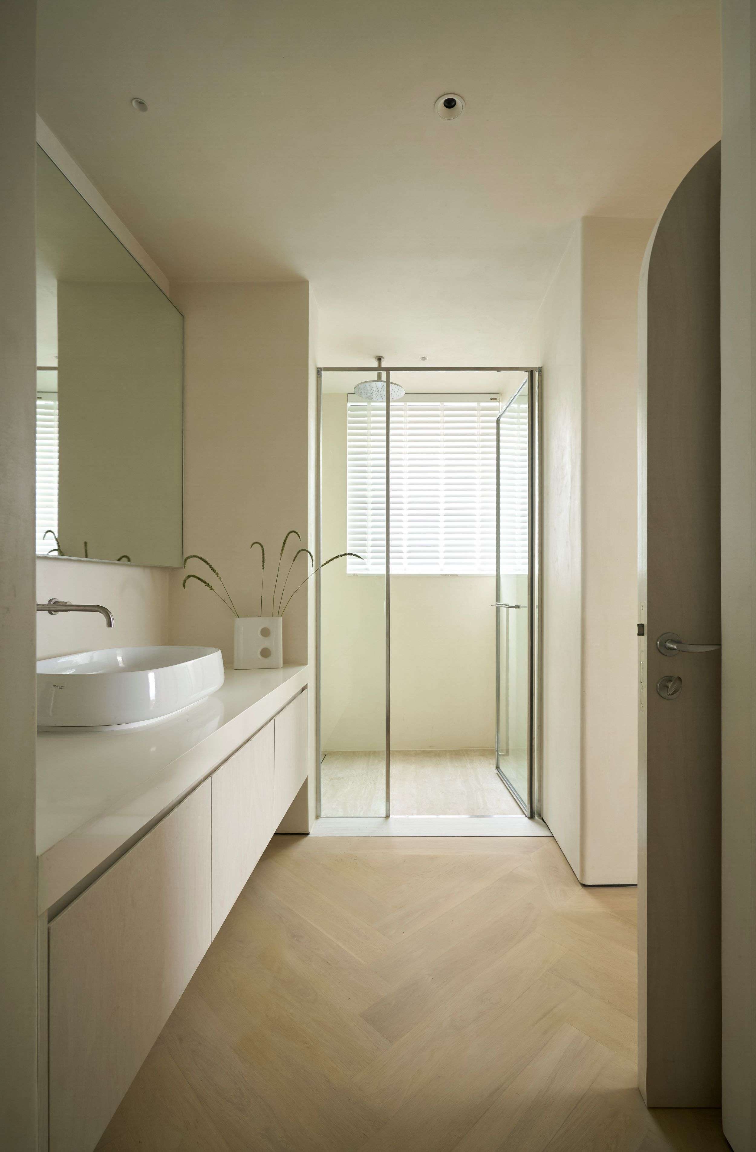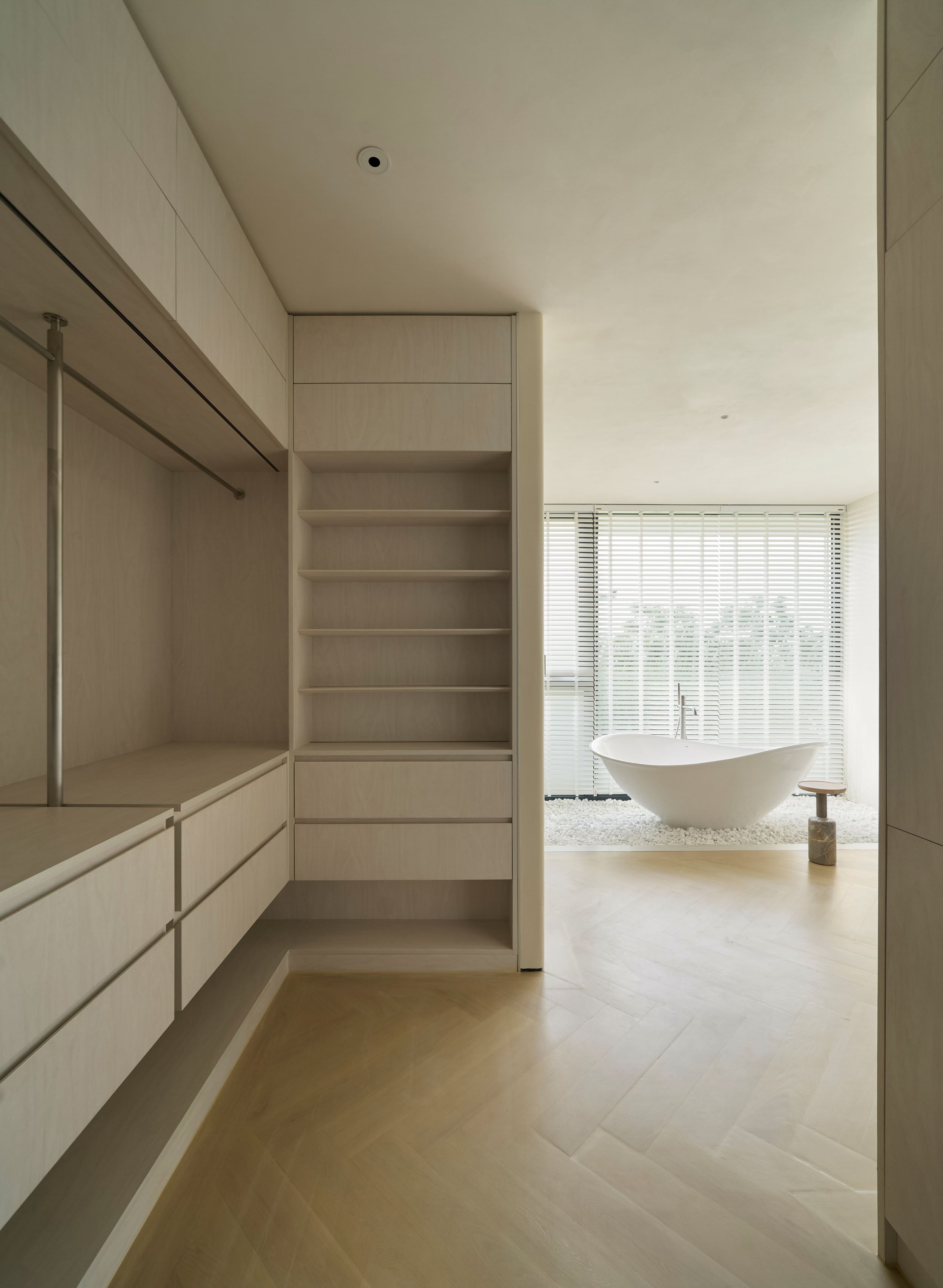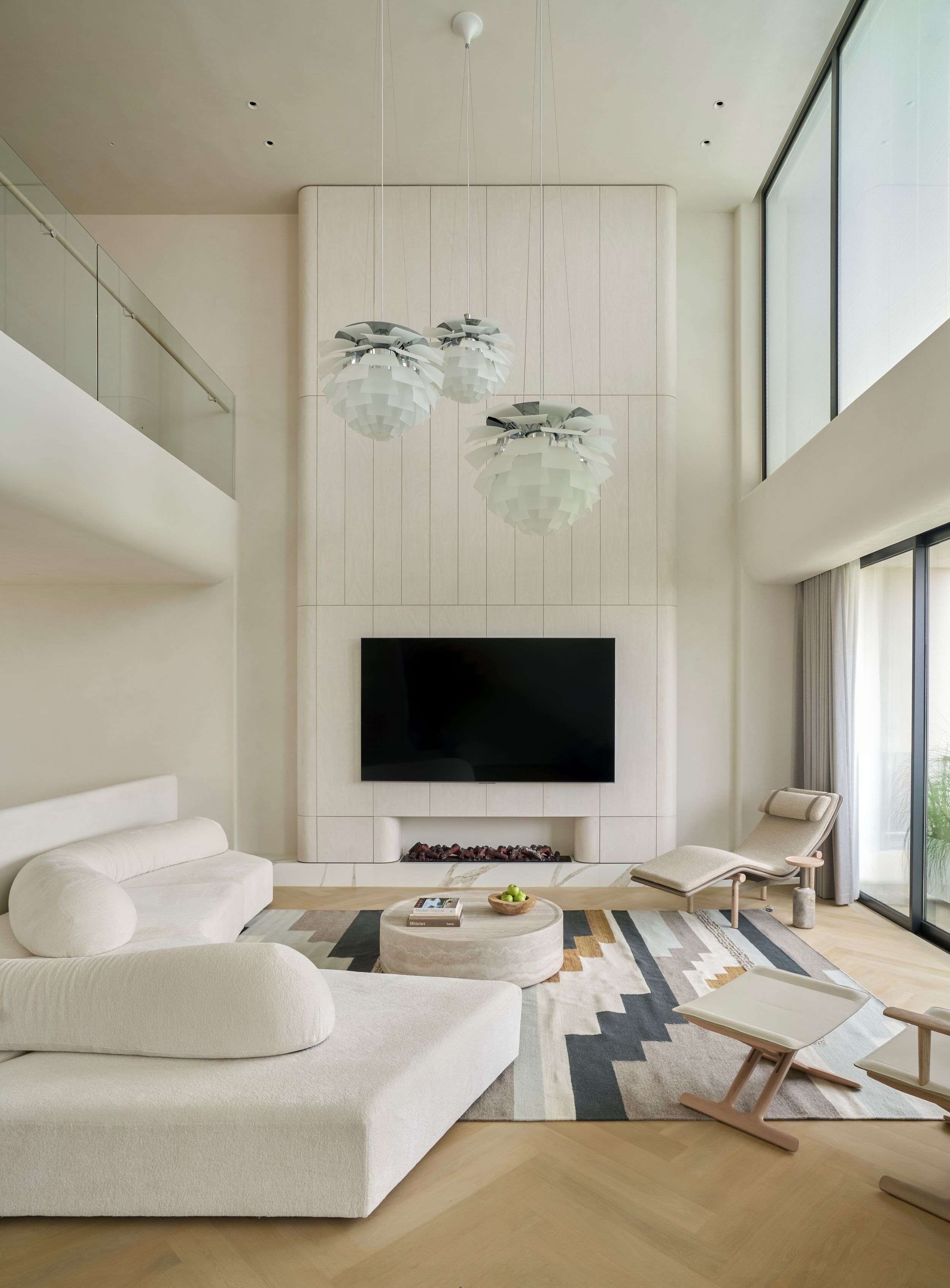 Ngôi nhà này được xây dựng với mục tiêu hàng đầu là đảm bảo an toàn cho trẻ nhỏ, vì thế mọi chi tiết, dù nhỏ nhất, đều được thiết kế có góc bo tròn mềm mại, tạo nên một điểm nhấn thẩm mỹ xuyên suốt toàn bộ thiết kế. Các đường cong của ngôi nhà được xử lý bởi những người thợ thủ công, chuyển tiếp liền mạch từ mặt đất lên đến tầng thượng, điều này không chỉ giúp giảm nhiễu thị giác mà còn tăng được tính “tĩnh” cho tổng thể ngôi nhà. Chúng tôi không cố gắng tạo nên những điểm nhấn độc đáo nhưng xa lạ ở công trình này, thay vào đó, đội ngũ thiết kế tập trung xây dựng các trải nghiệm mới mẻ trong không gian. Các khoảng thông tầng đều gắn với lối giao thông chung để mở thoáng và giải phóng tầm nhìn cho người sử dụng. Tổng thể bố cục được chắt lọc rất tinh giản, dù là thiết kế mở nhưng vẫn có sự ngăn cách giữa các không gian sinh hoạt. Thay vì sử dụng các vách tường ngăn cách, chúng tôi chọn sử dụng hệ cửa lùa Slim khi cần phải ngăn không gian hoặc giảm tiếng ồn.