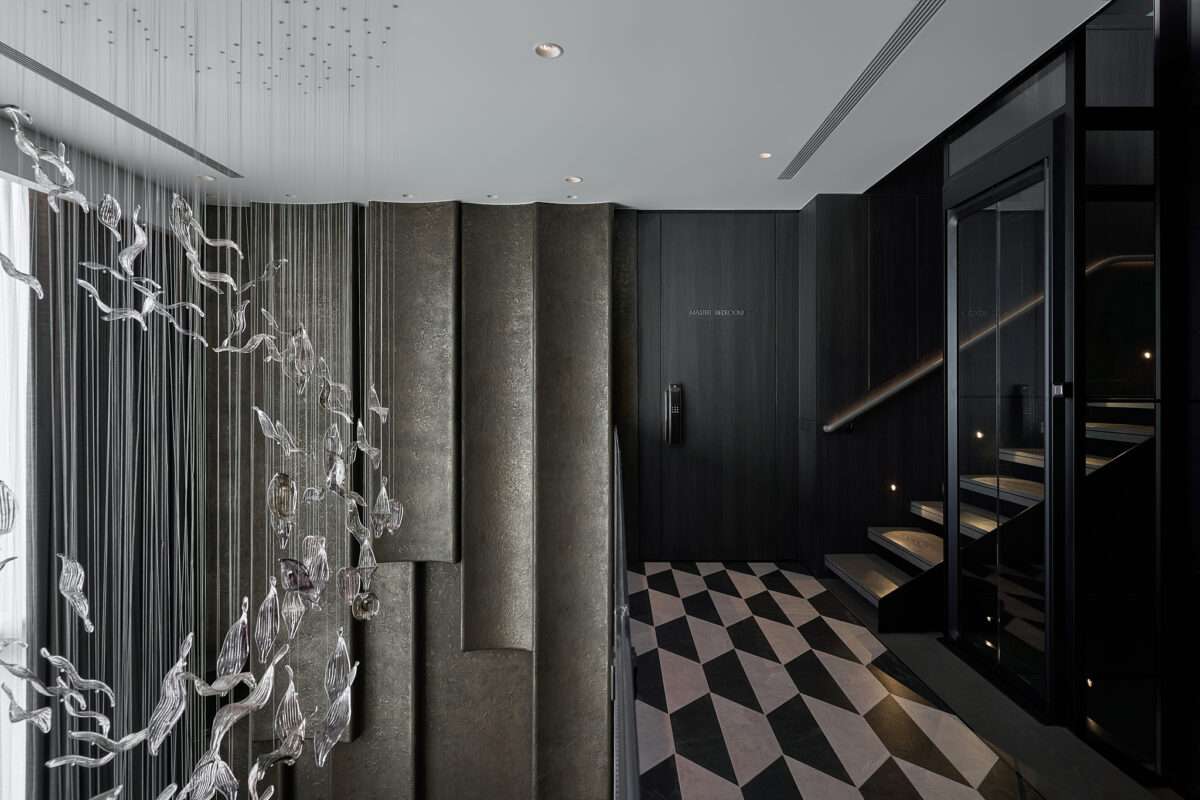 Các nhà thiết kế đã có sự kết hợp giữa các sắc thái đậm nhạt luân phiên của tông đen huyền bí, cùng sự khác biệt giữa các bề mặt vật liệu như gỗ, sơn kim loại,… tăng thêm tính linh hoạt cho không gian.