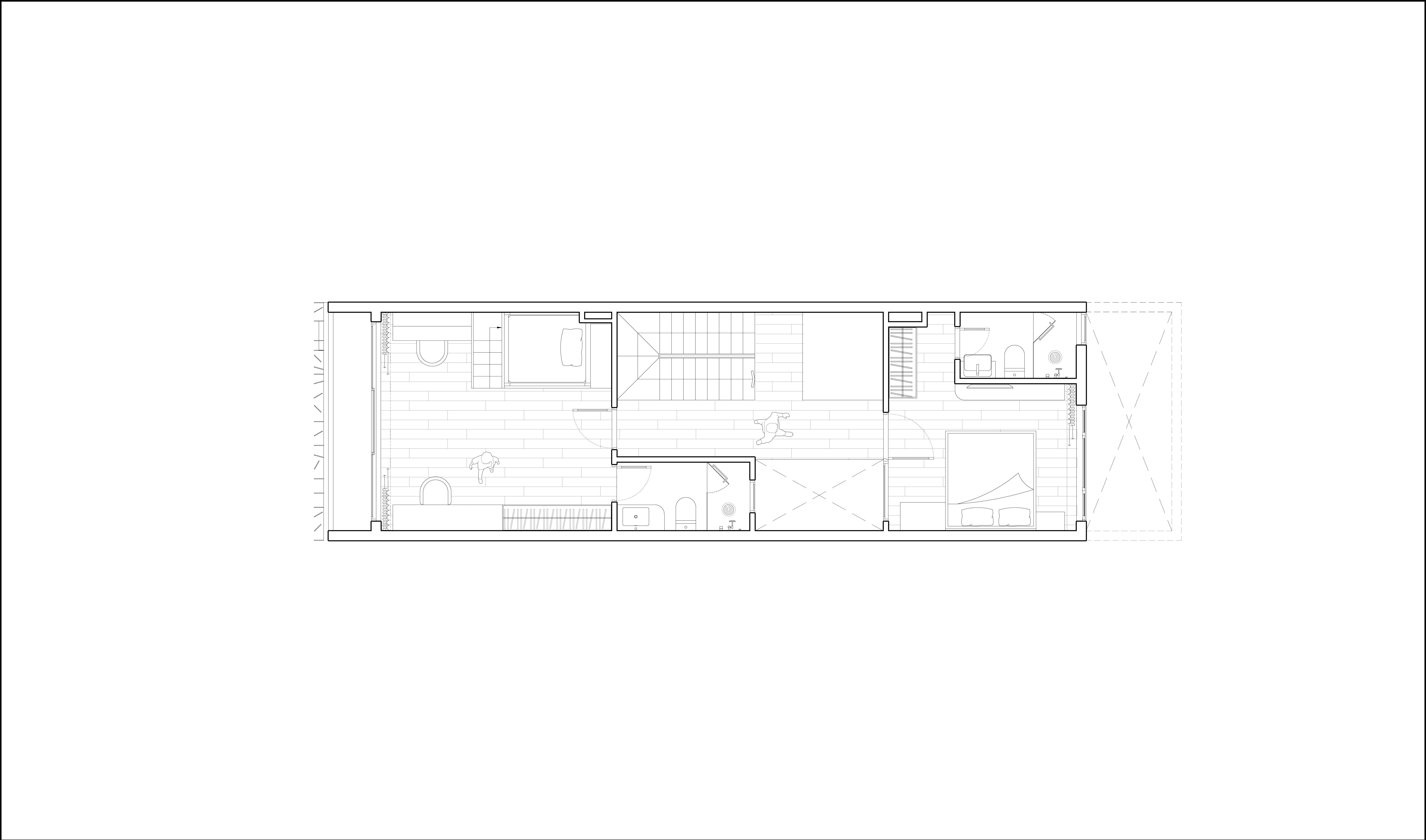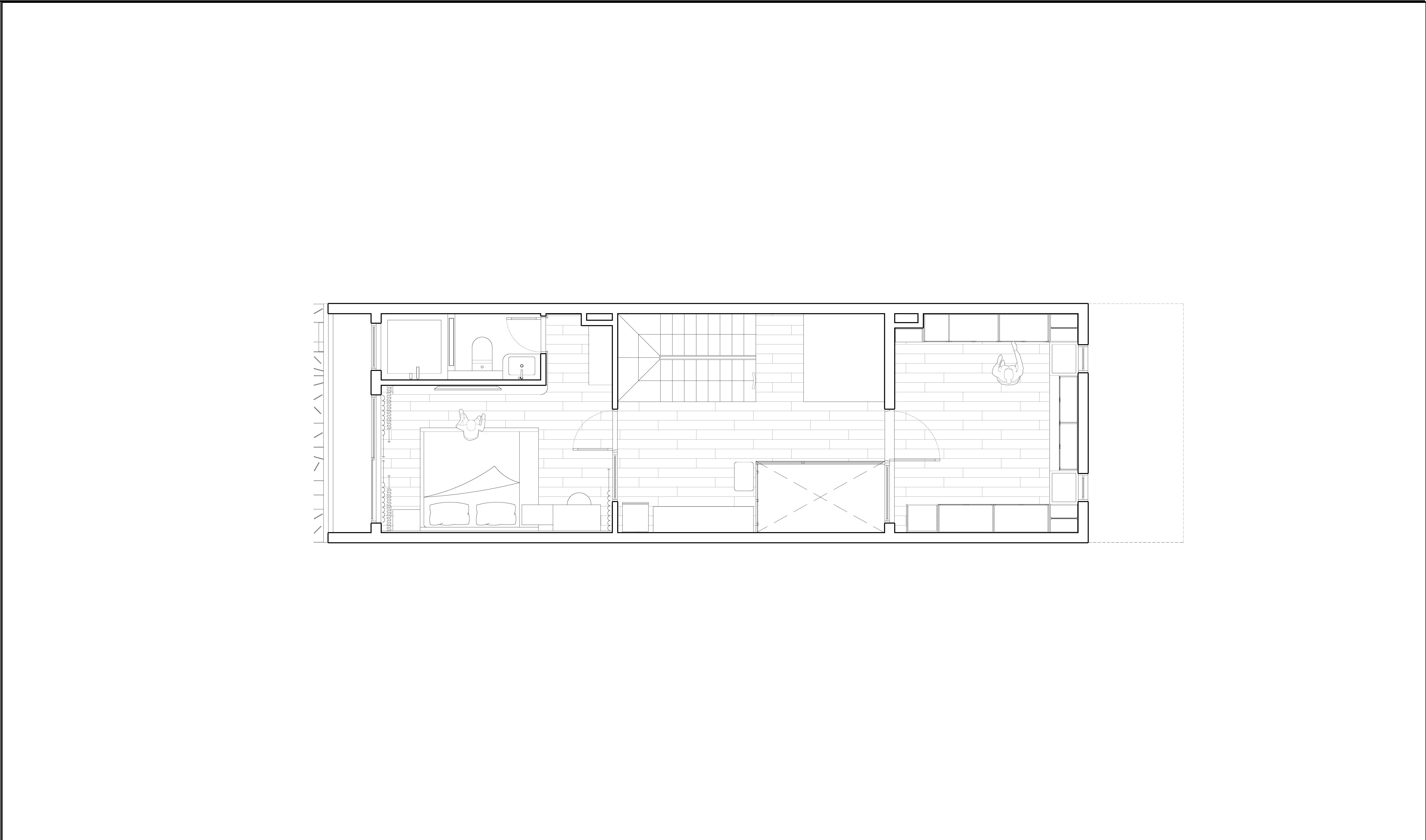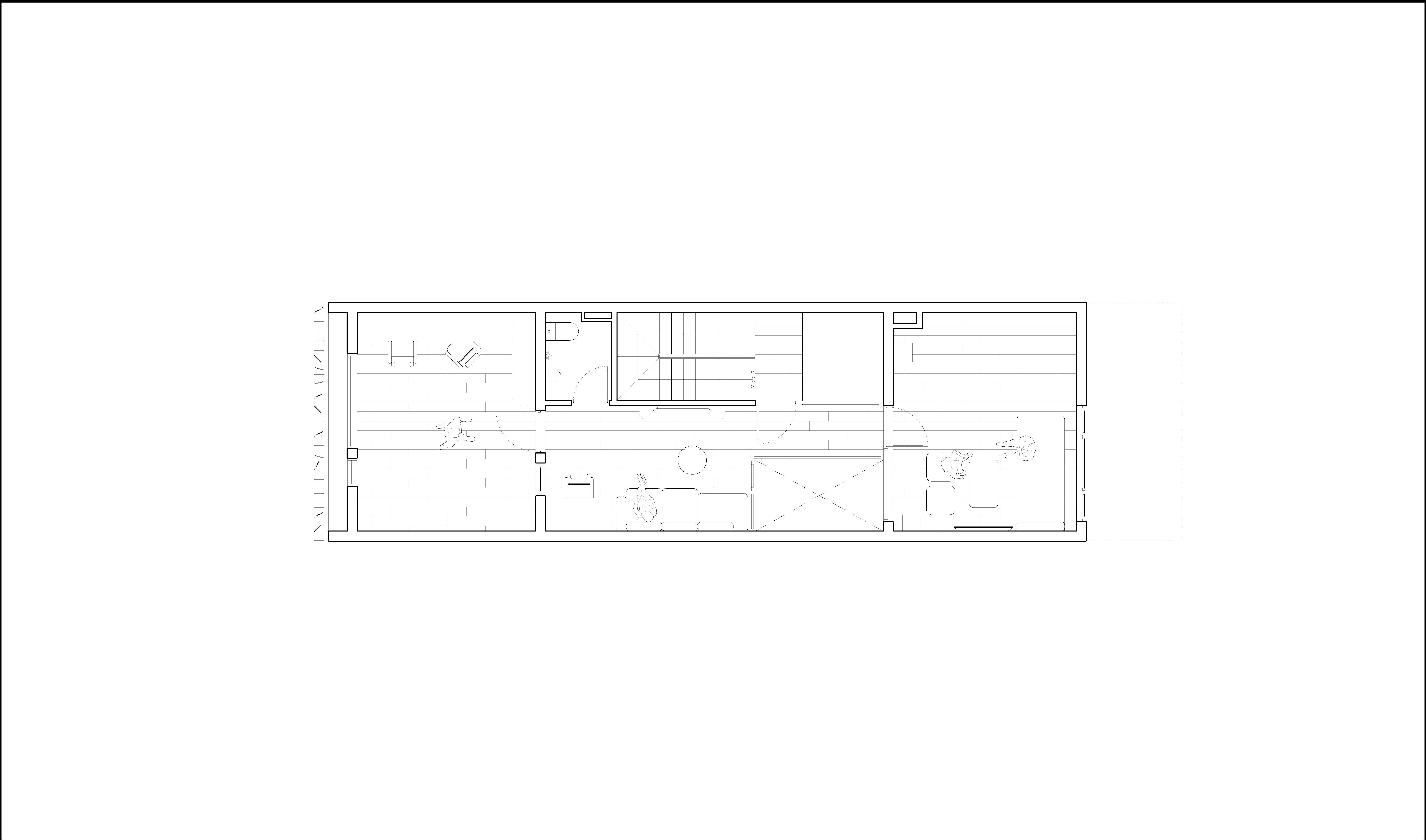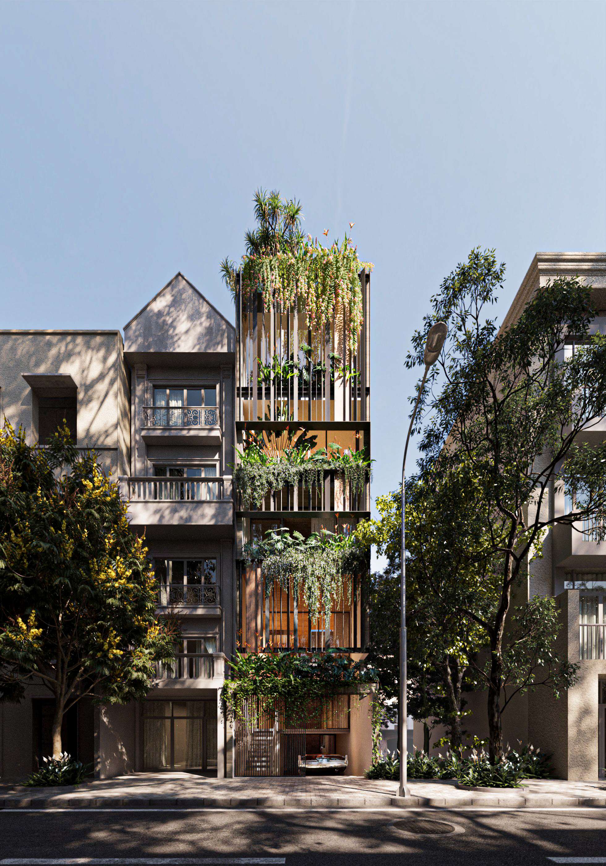 Với mong muốn không gian được bao phủ cây xanh và tách biệt với không gian ồn ào nơi phố thị. Mặt tiền kiến trúc được thiết kế lớp vỏ bao che bởi lam sắt, cây xanh khiến ngôi nhà như được hít thở, trao đổi không khí. Hệ lam này cũng điều tiết tốt các yếu tố khí hậu, môi trường như: tiếng ồn, khói bụi, nắng mưa. Cùng với đó, Không gian sinh hoạt được bố trí linh hoạt theo nếp sống của 3 thế hệ.