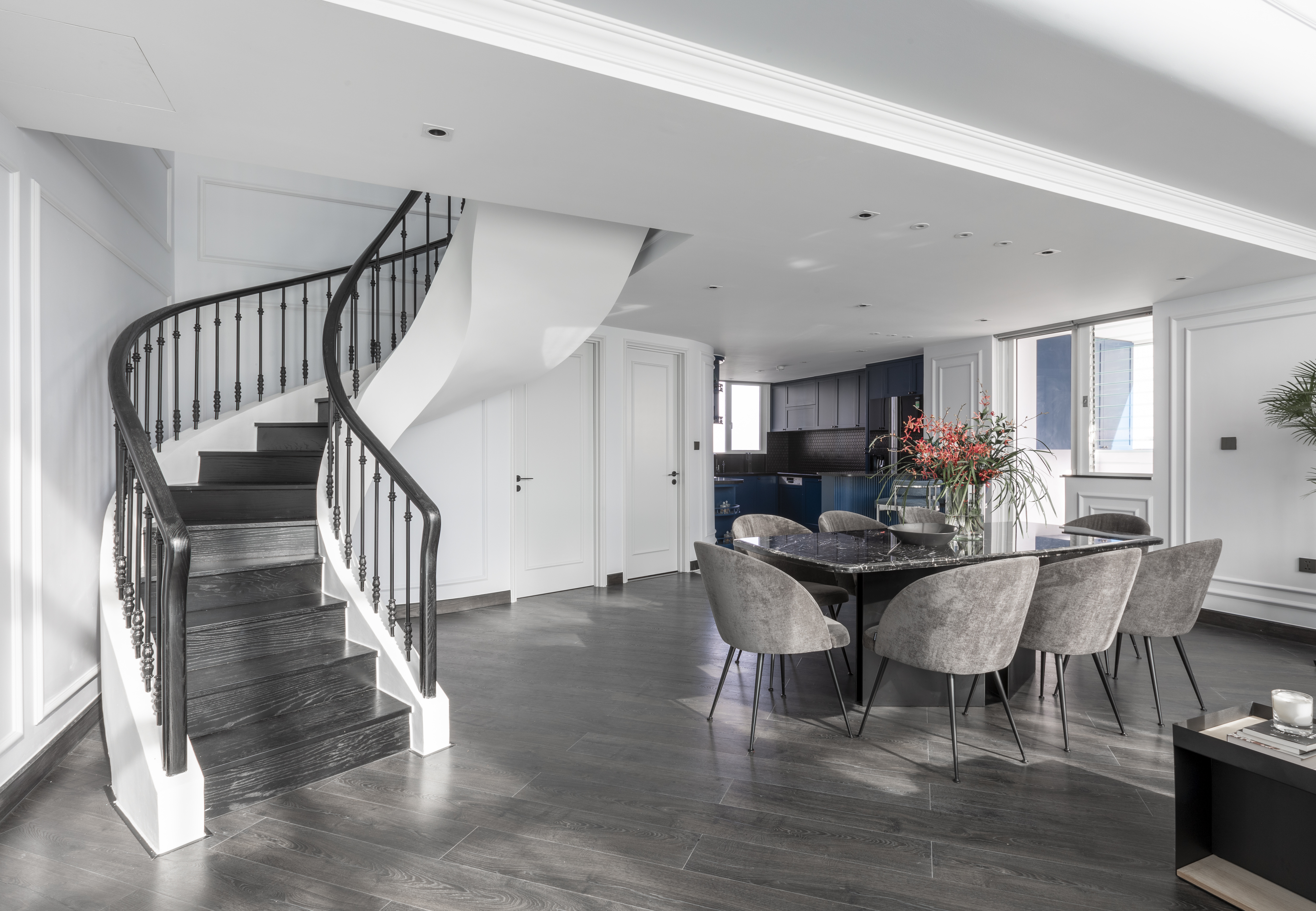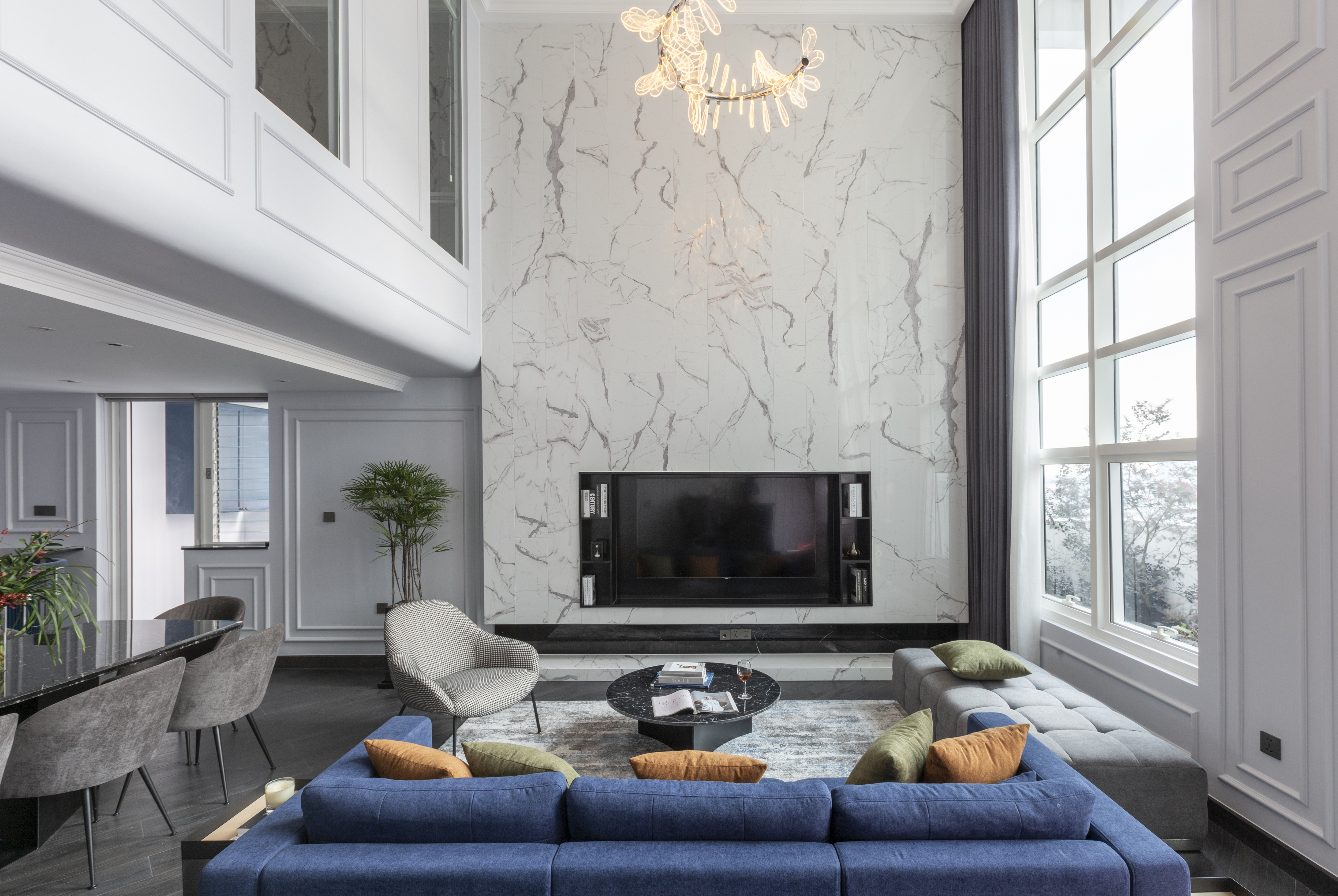 Căn hộ được thiết kế hòa nhập với ngôn ngữ kiến trúc, nội thất tân cổ điển kết hợp các yếu tố hiện đại bằng cách sử dụng các vật liệu hài hòa và hợp lí. Nội thất tân cổ điển kết hợp chi tiết hiện đại thể hiện sự sang trọng, khác xa với sự khiêm tốn, nhưng cẩn thận để vẫn trang nhã. Tạo tầm nhìn rộng, tạo cảm giác không gian thoáng đãng và nhẹ nhàng.