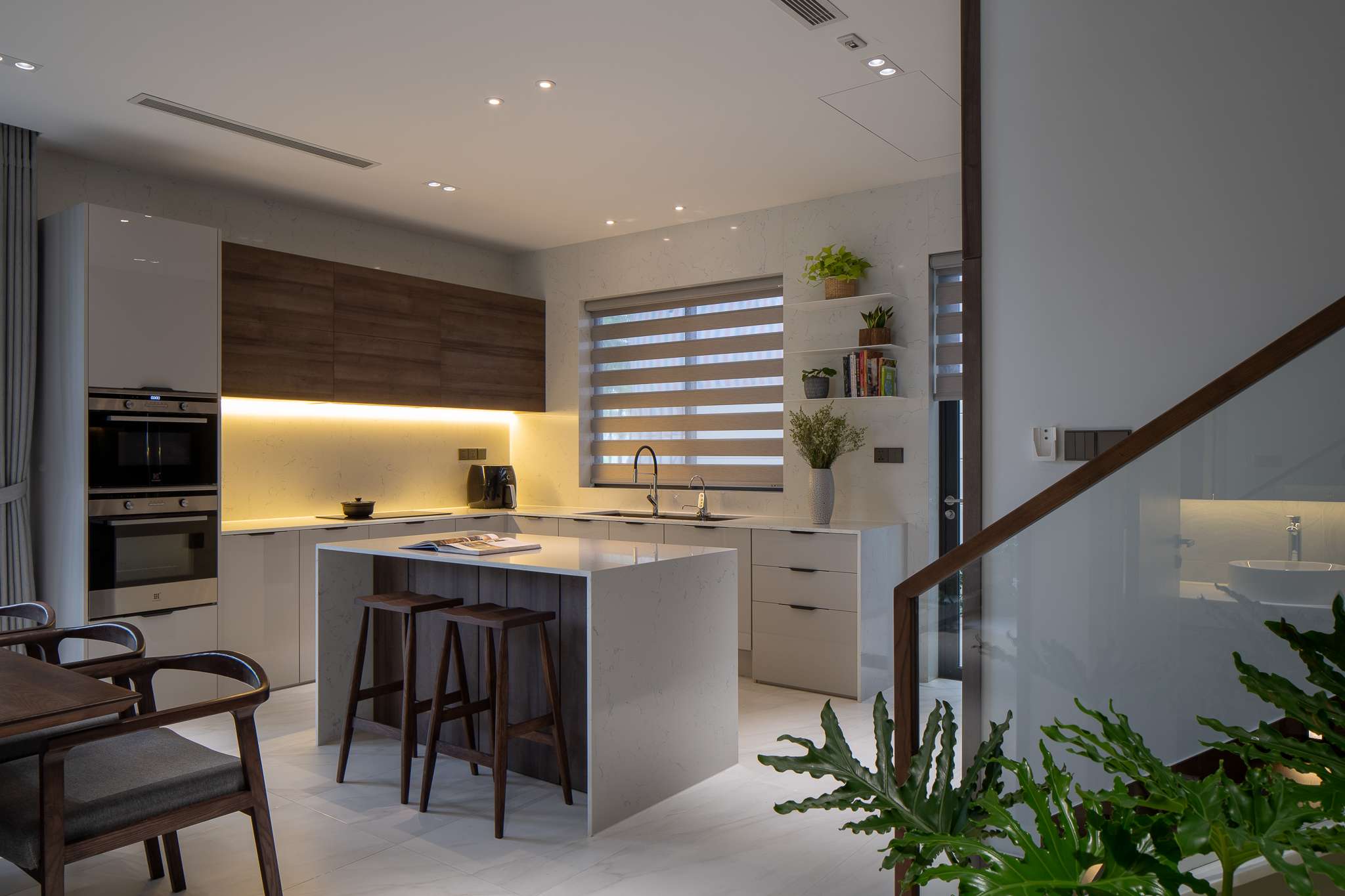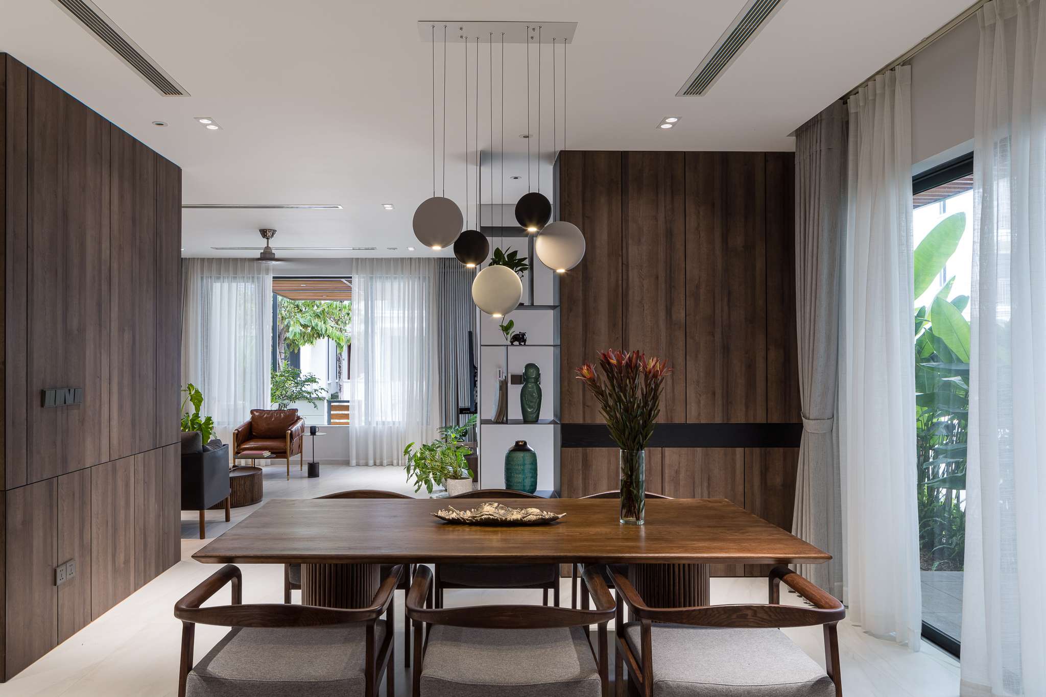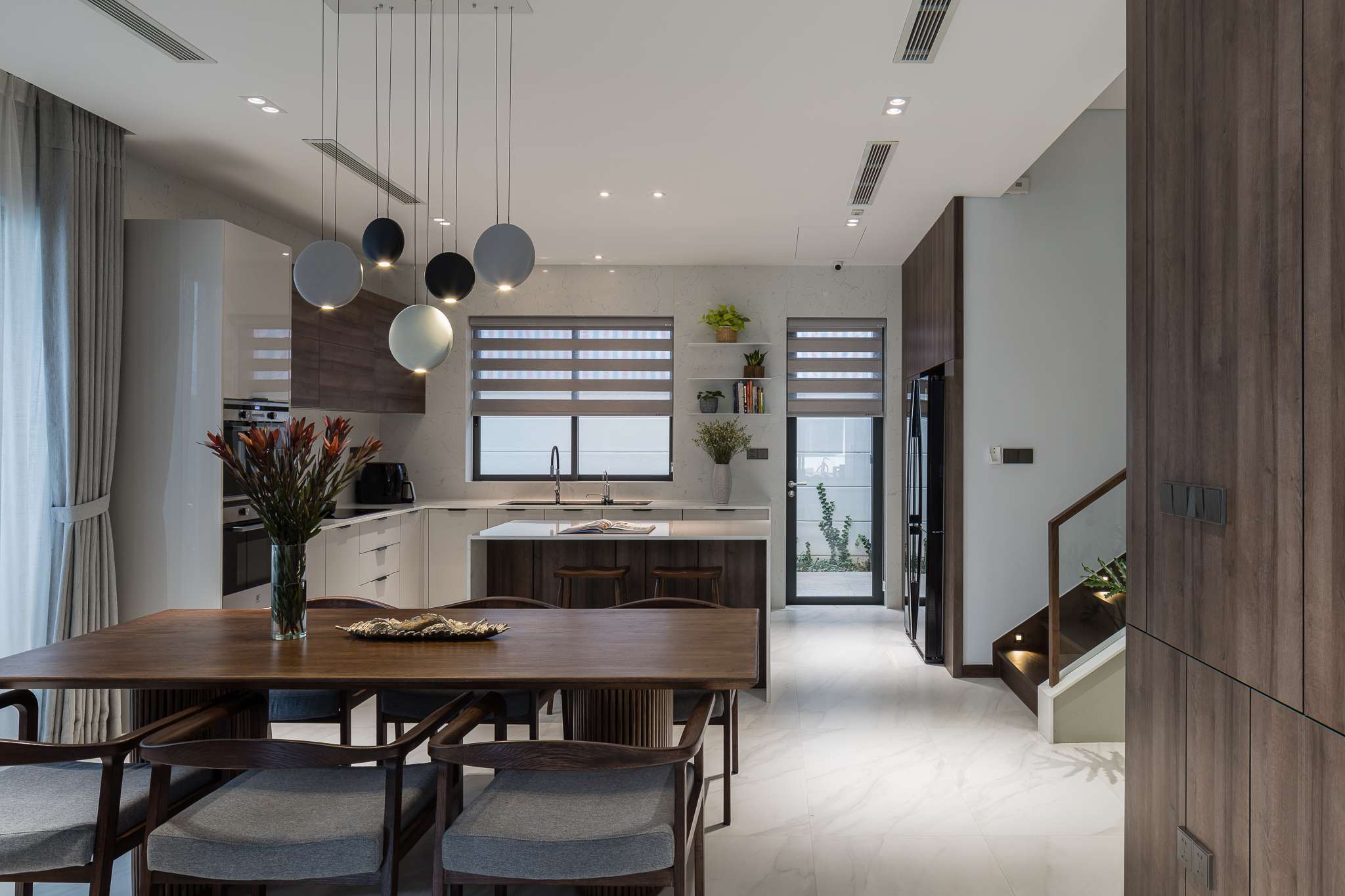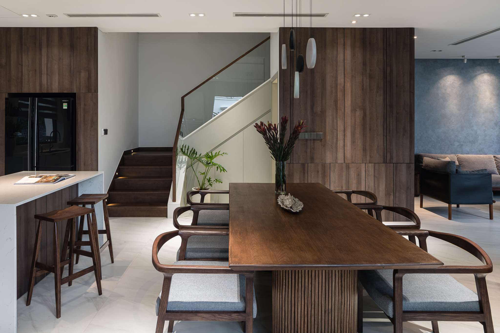 Ngôi nhà phố liền kề sau khi cải tạo mang lại cho chủ nhà một không gian sống nhẹ nhàng thông thoáng, tạo cảm giác gần gũi bằng việc tận dụng tối đa ánh sáng tự nhiên. Với thiết kế tối giản mà hiện đại, đặc biệt điểm nhấn các hệ vách gỗ lam dấu cánh được xử lí khéo tạo cảm giác rộng với mảng khối mạnh. Màu trung tính của vật liệu, tường và gỗ công nghiệp được kết hợp nhấn mạnh không gian hiện đại, sang trọng đồng thời cũng là một lựa chọn hoàn hảo cho những không gian được thiết kế tinh giản và nhẹ nhàng, tạo sự linh hoạt và biến hóa đa dạng trong khi sử dụng.
