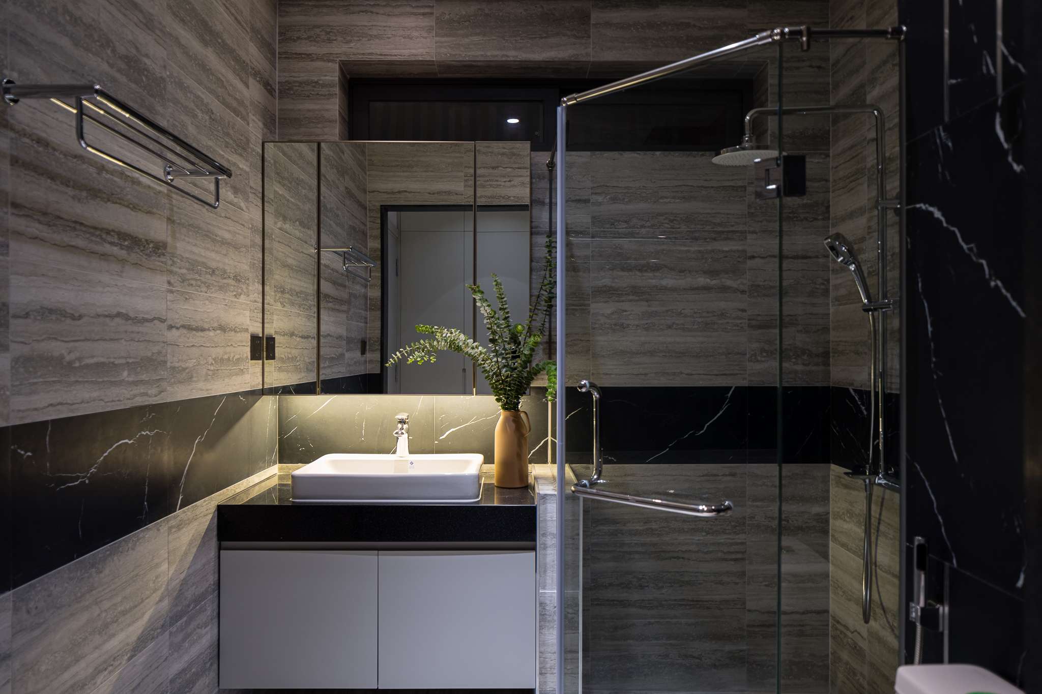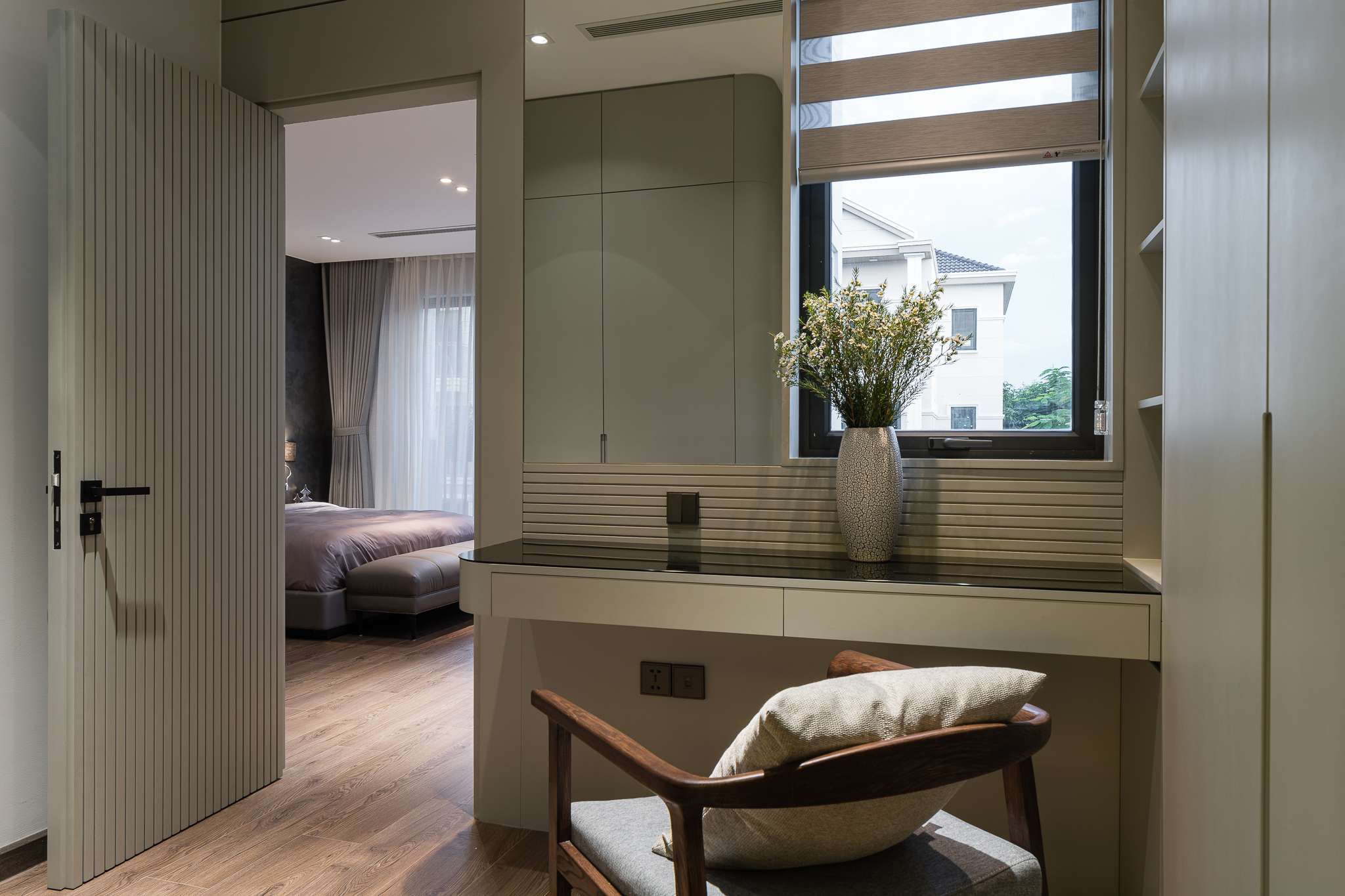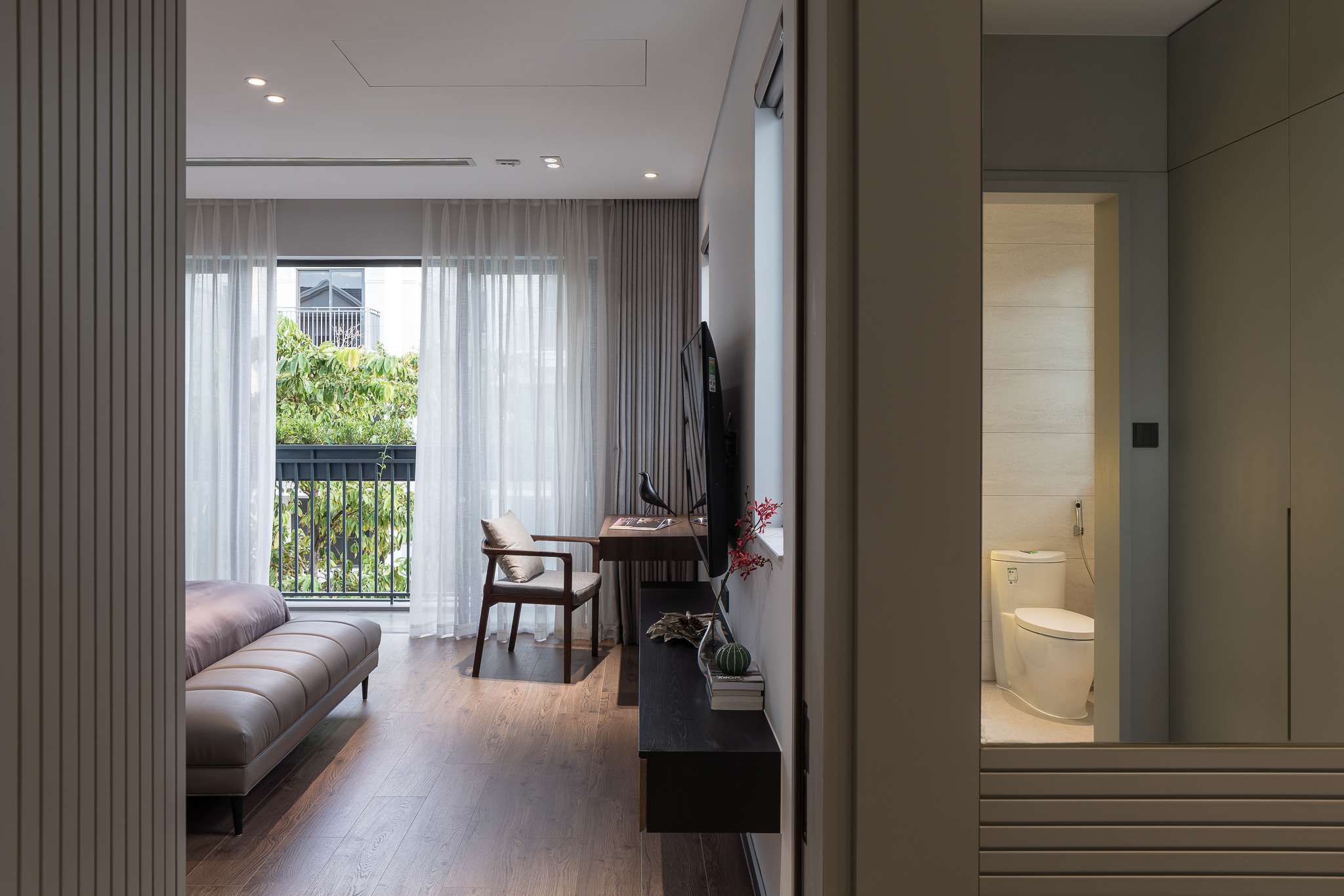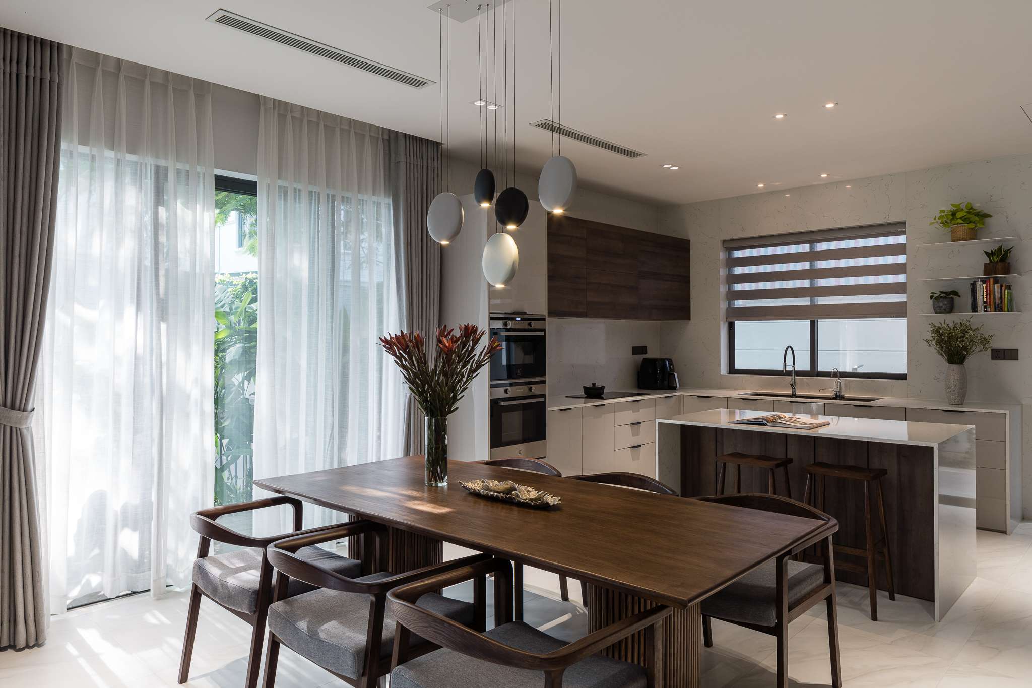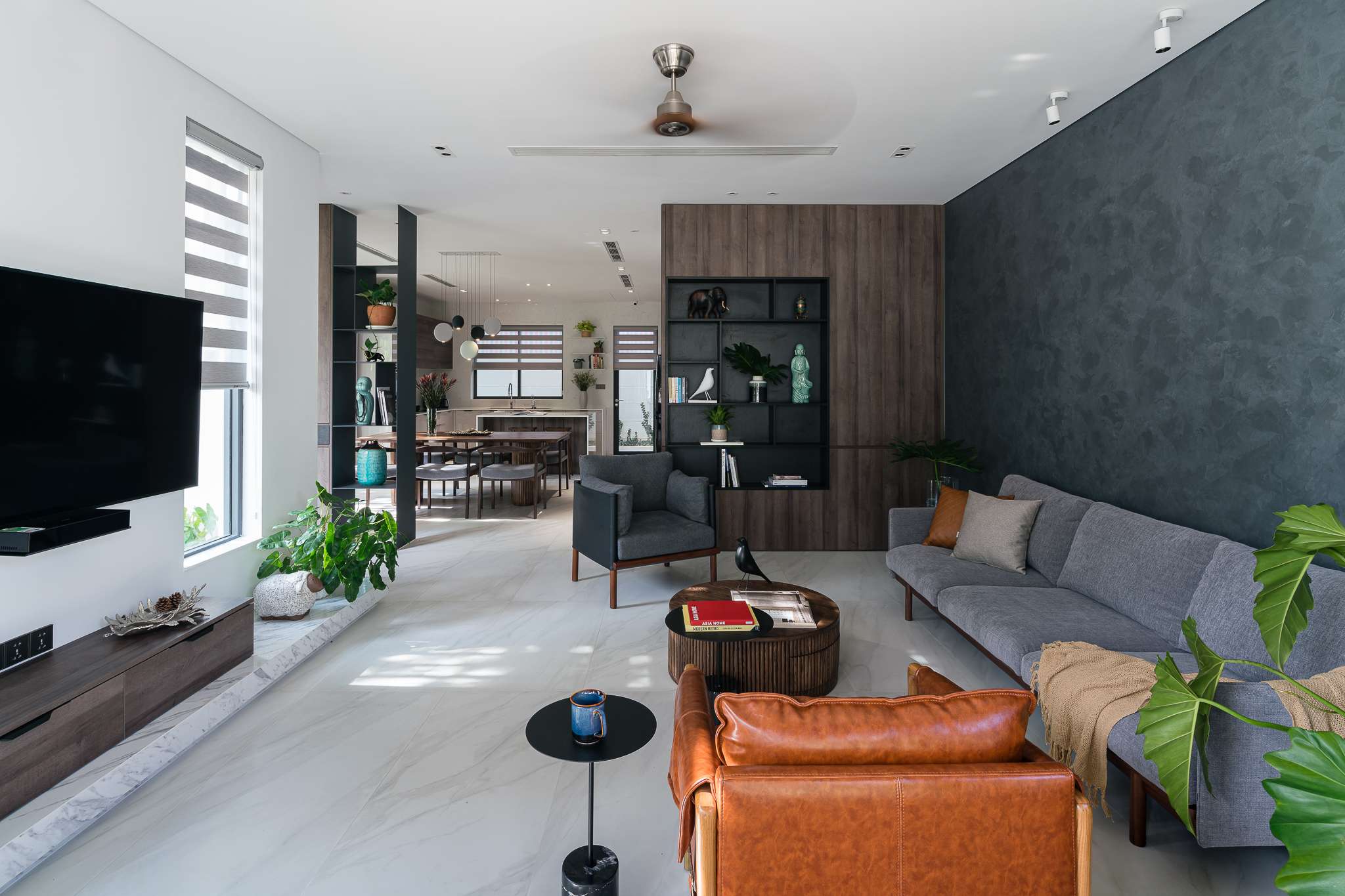 Ngôi nhà phố liền kề sau khi cải tạo mang lại cho chủ nhà một không gian sống nhẹ nhàng thông thoáng, tạo cảm giác gần gũi bằng việc tận dụng tối đa ánh sáng tự nhiên. Với thiết kế tối giản mà hiện đại, đặc biệt điểm nhấn các hệ vách gỗ lam dấu cánh được xử lí khéo tạo cảm giác rộng với mảng khối mạnh. Màu trung tính của vật liệu, tường và gỗ công nghiệp được kết hợp nhấn mạnh không gian hiện đại, sang trọng đồng thời cũng là một lựa chọn hoàn hảo cho những không gian được thiết kế tinh giản và nhẹ nhàng, tạo sự linh hoạt và biến hóa đa dạng trong khi sử dụng.